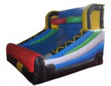 Shoot fast! Go head to head with this sports inflatable to see who can shoot the most baskets. The Mini Basketball Shootout includes 3 basketballs with 2 hoops side by side. A ramp sends the balls right back down so the competitors can reach fast and make as many attempts as they can to beat their opponent. Teams can also relay for the best all-around score - compete against a timer and see how your score stacks up! This is a great inflatable for school fairs, carnival events, potlucks, fundraisers, sports-themed parties, and pre-game celebrations. Your NBA fans will have a blast with this moonwalk.